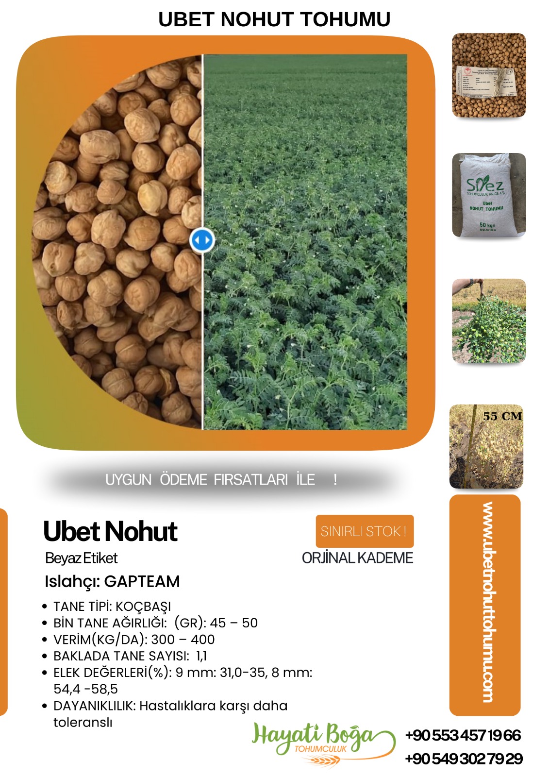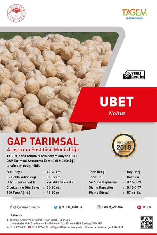 Ubet Nohut Tohumu Siyez Tohumculuk tarafından geliştirilmiştir. Sözleşmeli üretim hakkı Siyez Tohumculuğa Aittir.